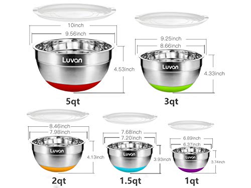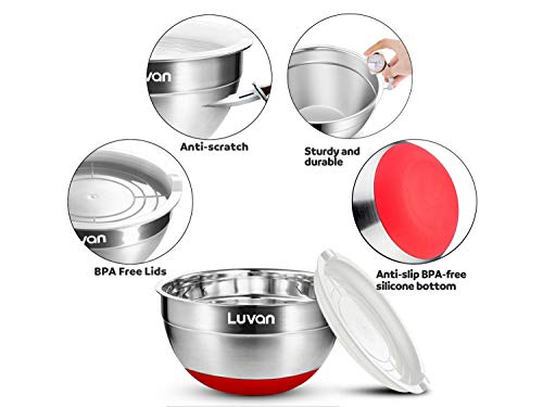 Luvan 304 Roestvrij Staal Mengkommen met Deksels, Brede Rand om Makkelijk te Grijpen en Schenken, Extra Diep voor…