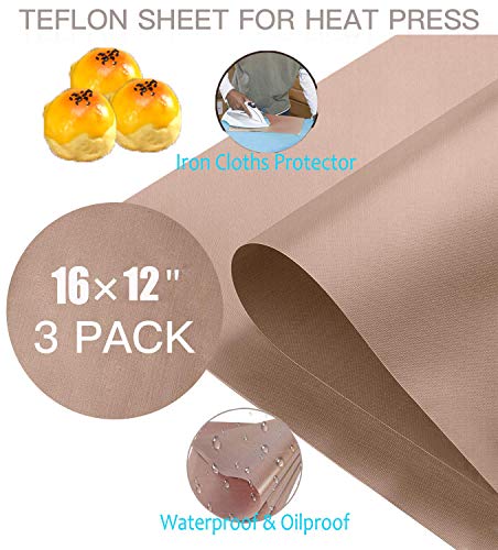 Deze hoogwaardige 3 Pack INTVN Teflon Sheet voor Heat Press zorgt voor een hoge temperatuurbestendigheid tot 600 graden, beschermt uw vinyl, kleding en strijken terwijl u opstrijkt met onze professionele kwaliteit. Perfect voor warmtepersen!