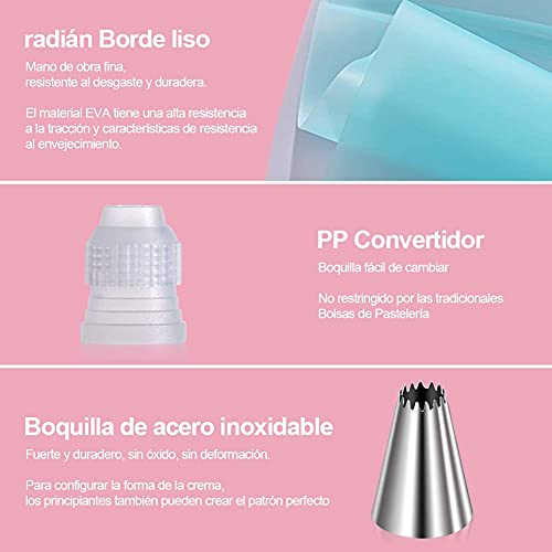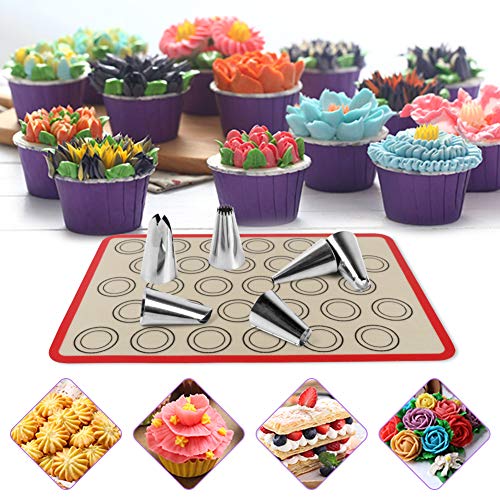 【Perfect Cake Decorating Kit】: met behulp van onze DIY-bakgereedschappen kunt u gemakkelijker verschillende soorten gebakken voedsel maken en de stijl bakken die u wilt. 2 stuks siliconen matten van 42 x 29 cm,12 stuks roestvrijstalen mondstukken, 2 stuks spuitzakjes en 2 stuks koppelstukken,2 stuks siliconen brushes spatel,enz.(Sterk, duurzaam, roestvrij staal,bestand tegen corrosie,herbruikbaar,antikleef,Makkelijk schoon te maken.)
