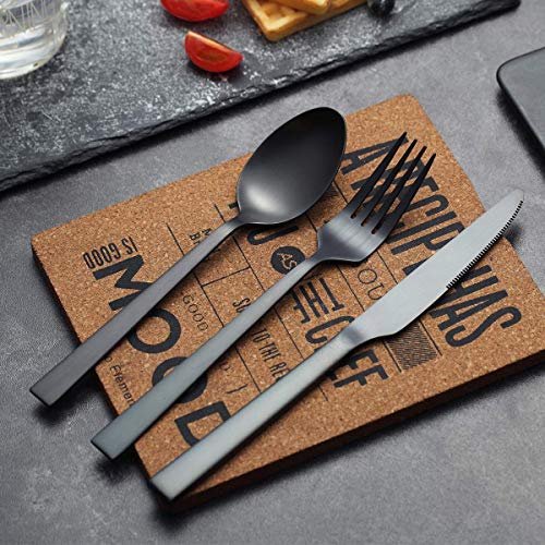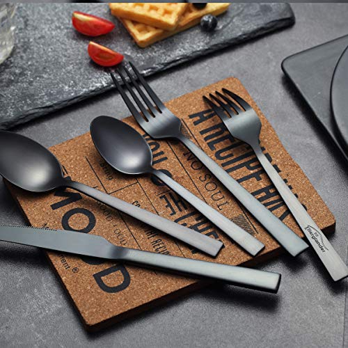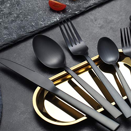 Berglander Bestekset 24 stuks met zwart titanium verguld, roestvrij staal zwart zilverwerk set, zwart bestek set…