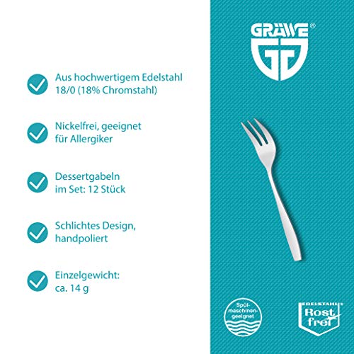 GRÄWE®, serie Königstein, taartvorkjes, roestvrij staal, 12 stuks