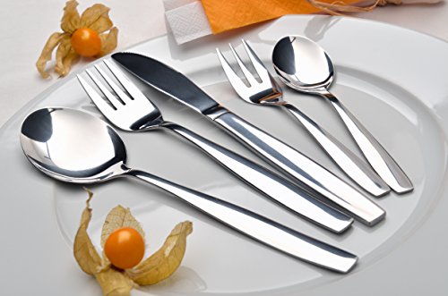 dessertvorken in een set van 12 stuks. Lengte: 14 cm, dikte greep: ca. 1,4 mm. Afzonderlijk gewicht: ca. 14 g. Van roestvrij staal 18/0 (chroomstaal), met de hand gepolijst, vaatwasmachinebestendig, roestvrij, nikkelvrij