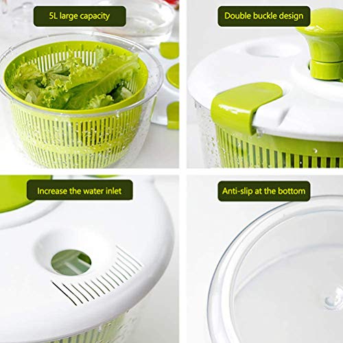 ❤️ Grote capaciteit: de salade-fijnafstemmende groentewasmachine met kom heeft een inhoud van 5 liter, die een grote hoeveelheid voedsel tegelijk kan drogen om aan uw behoeften te voldoen en geschikt voor thuisgebruik.
