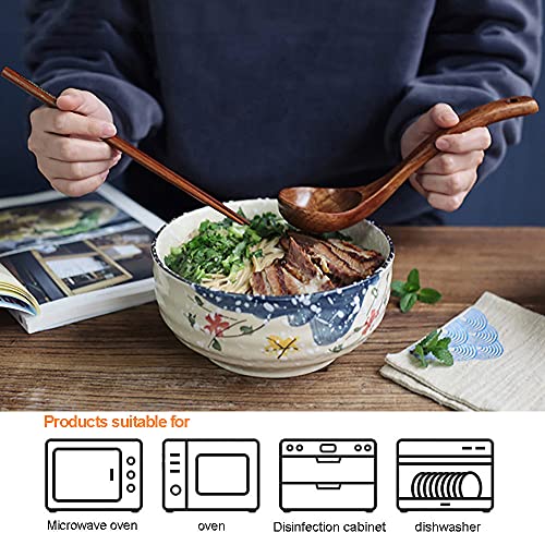 Japanse Stijl Ramen Soepkom, Enkele Retro Handgeschilderde Onderglazuur Keramische Slakom Met Grote Capaciteit…