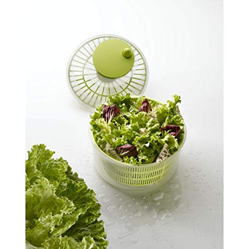 Slacentrifuge met zwengelmechanisme: overtollig water wordt door centrifugeren grondig en voorzichtig van de salade verwijderd