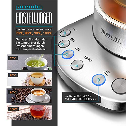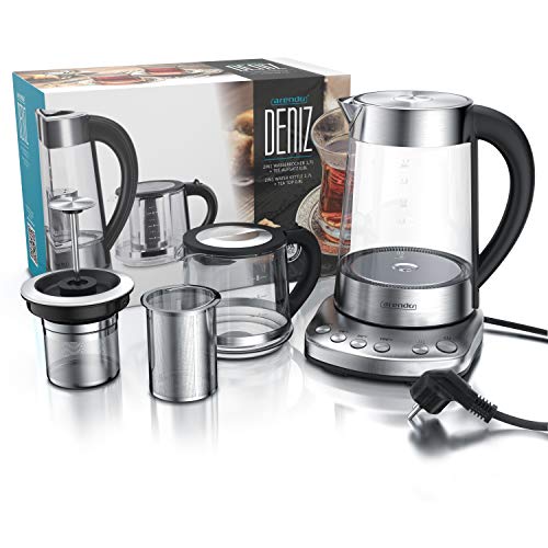 Arendo Glazen waterkoker met temperatuurinstelling en theezeef en opzetstuk – Turks theekoker – roestvrij staal – 1,7…