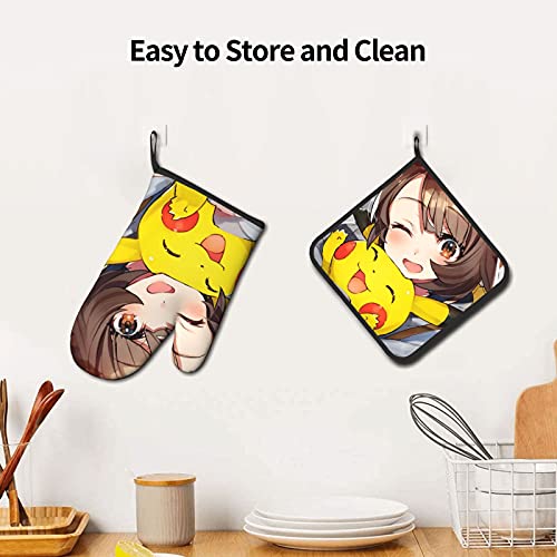 Xiaoxian Pokemon 47 Hittebestendige keukenovenhandschoenen, ovenhandschoenen en potdekselhandschoenen, veilig om te…
