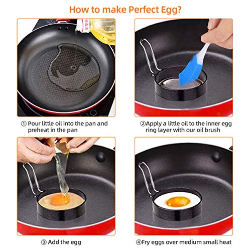 Bestcool Non-Stick Ei Ringen, 4 stuks RVS Poachette Ringen voor gebakken en gepocheerde eieren Crumpets, Mini…