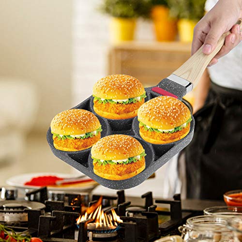 Specificaties: Pannenkoek Koekenpan, Koekenpan Bakpannen 4 Cup Nonstick met Hittebestendige Houten Handvat Koekenpan Inductie voor Open…