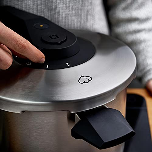 VEILIGHEID GEGARANDEERD – Dankzij 5 verschillende in het deksel geïntegreerde veiligheidsmechanismen stijgt de druk in de hoge drukpan nooit boven een beheersbaar niveau.