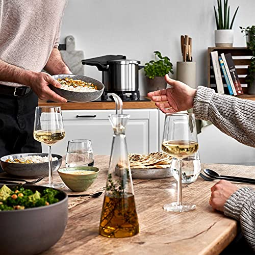 HET BESTE MATERIAAL – De hogedrukpan is gemaakt van roestvrij staal, dat door ‘impact bonding’ met 1.600t druk werd samengeperst met de warmtegeleidende aluminiumkern van de hoogwaardige capsulebodem. Dit maakt de kookpan bijzonder duurzaam en energie-efficiënt.