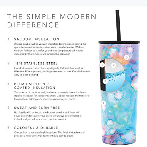 Specificaties: Simple Modern 710mL (24oz) Classic Reismok Tumbler met 2 deksels: herbruikbaar rietje en klep – kolf koffie bier…