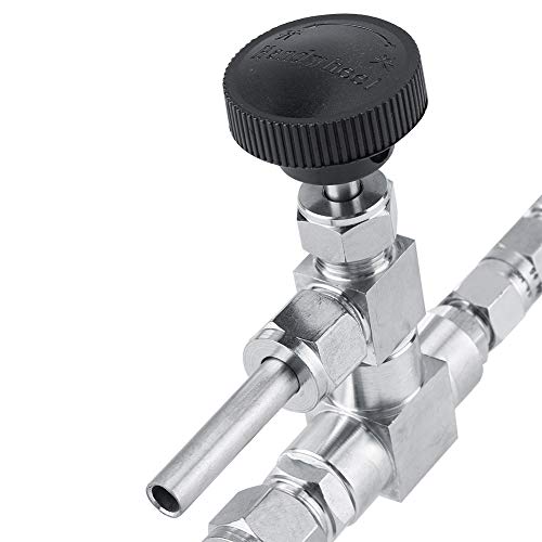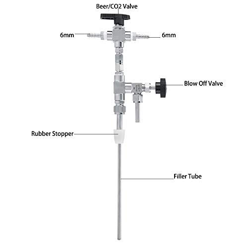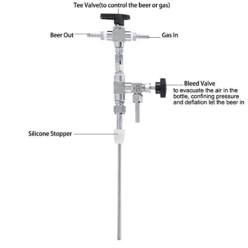 Beschikt over een speciaal ventiel, waarmee CO2 en bier door dezelfde roestvrijstalen slang rechtstreeks op de bodem van de fles kunnen stromen.